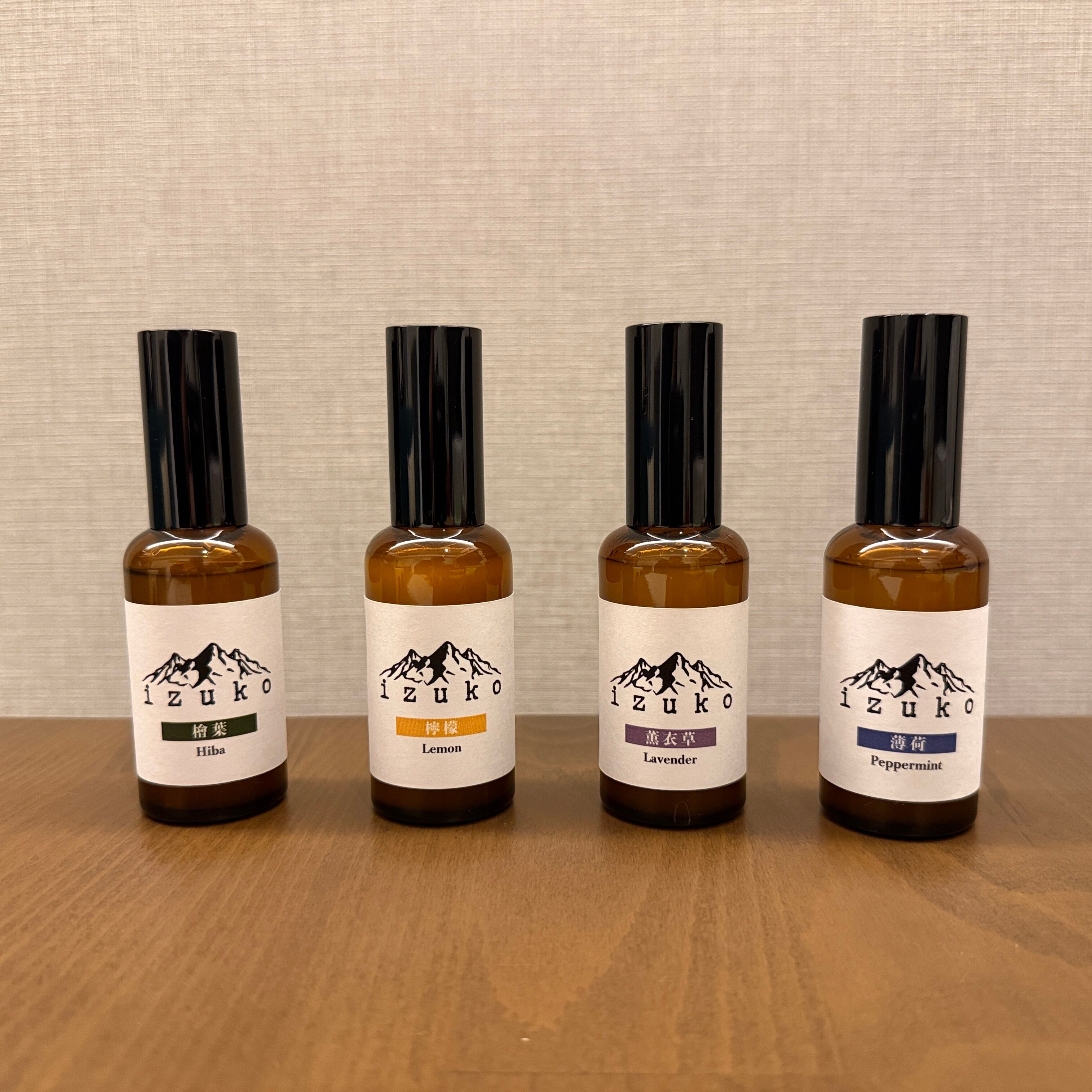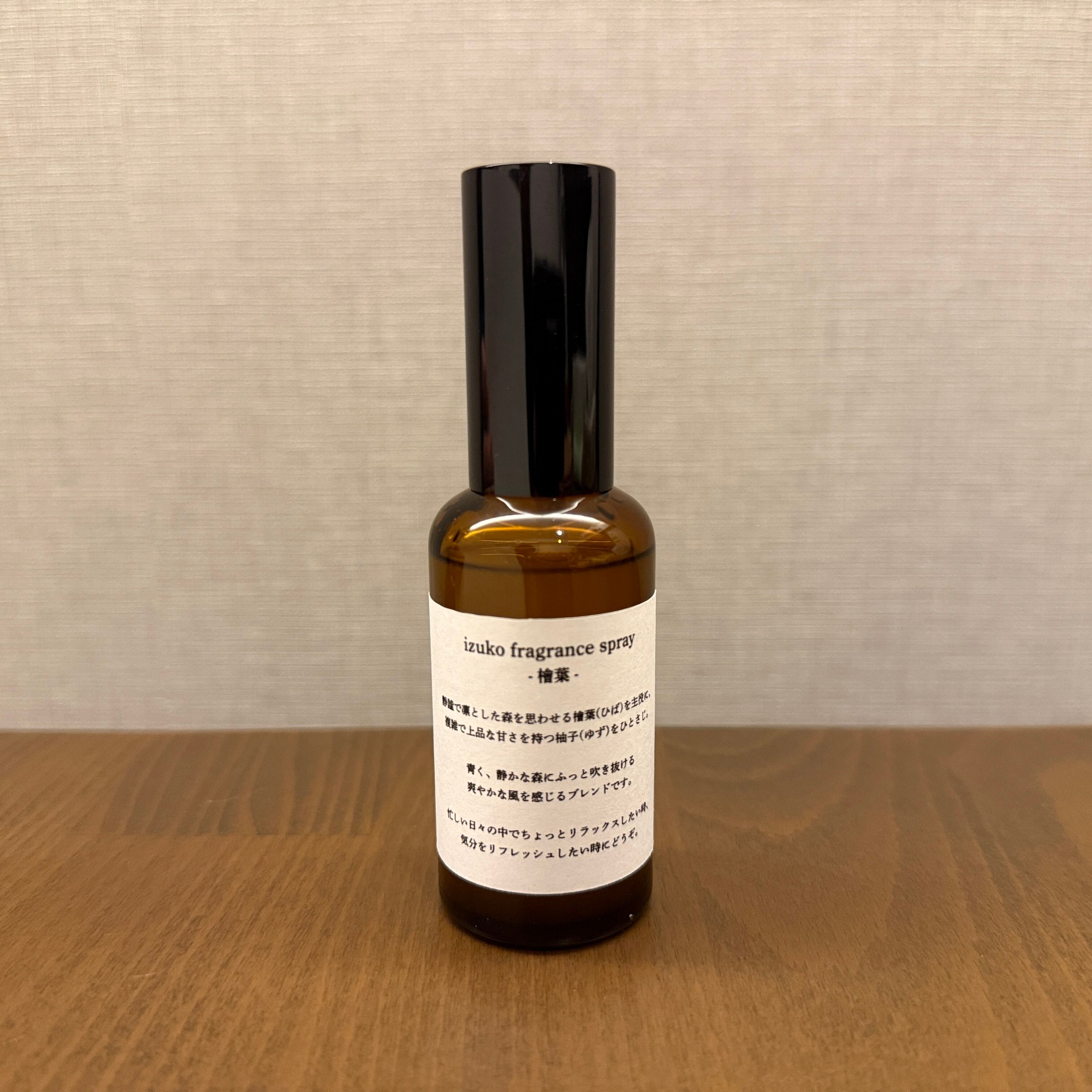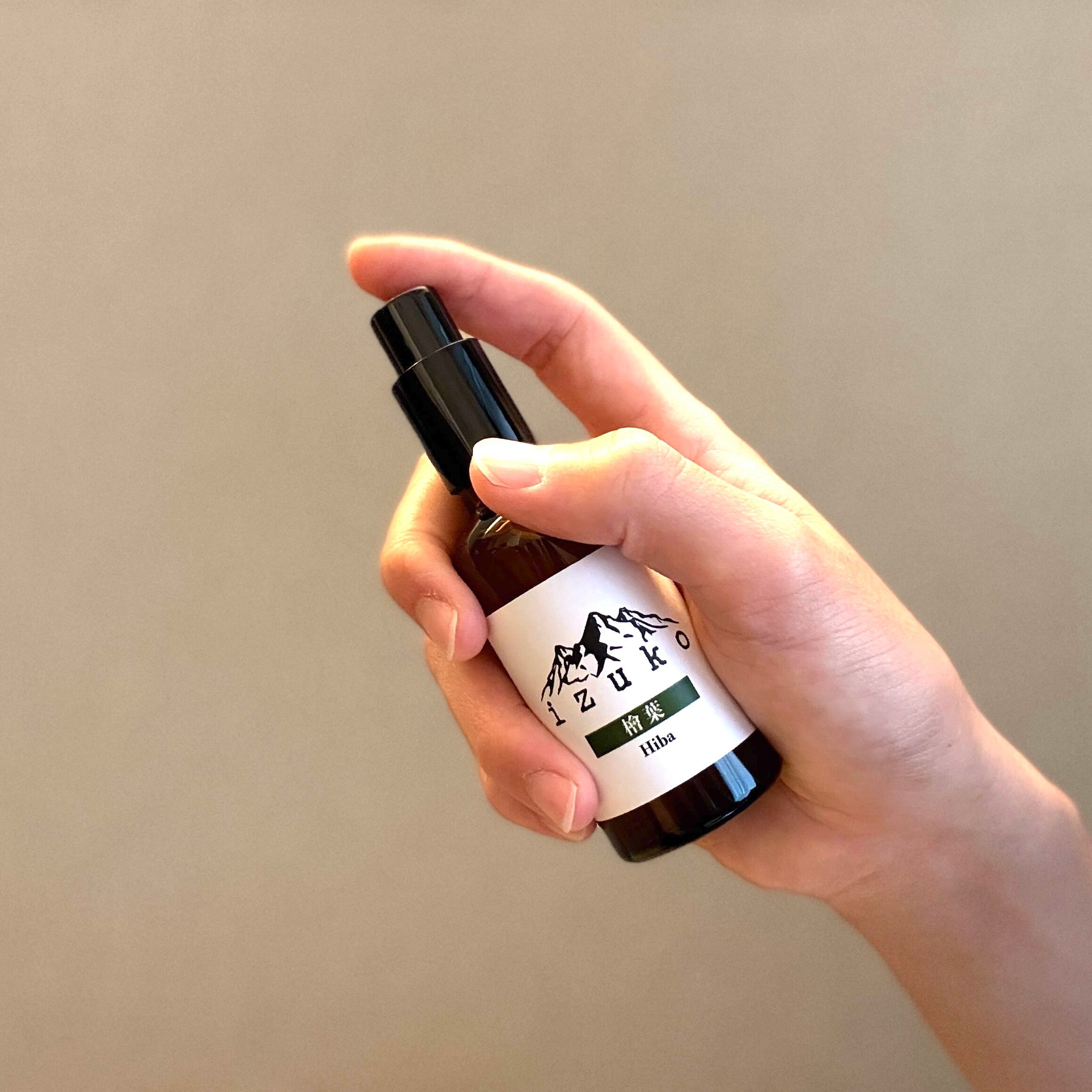 森香る檜葉(ひば)を主役に、香り高い柚子(ゆず)をブレンドしたizuko特製のフレグランススプレーです。