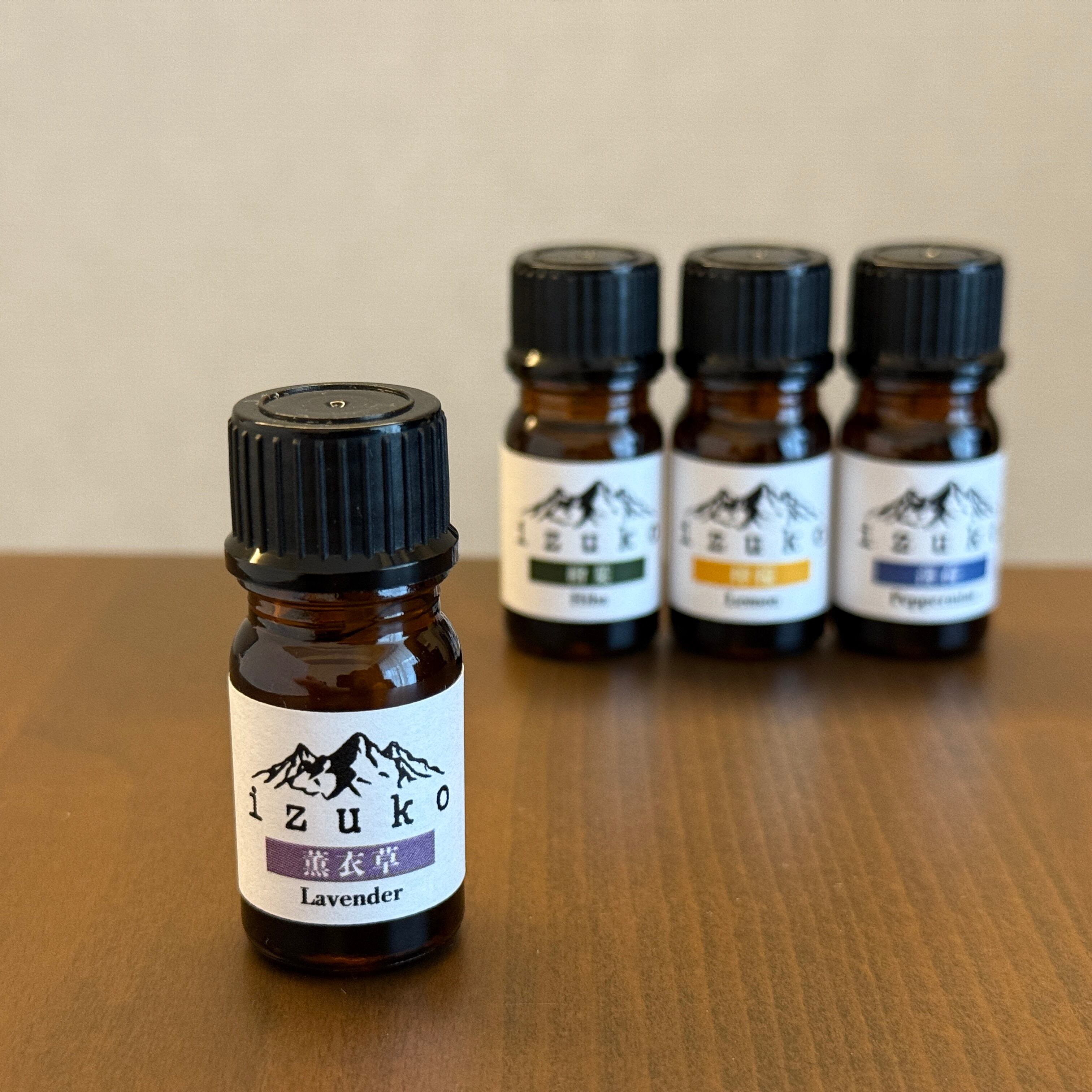 izukoでは自然本来の香りをより楽しんでいただくため、人工香料は一切使わず、天然精油のみで香りを作り上げています。