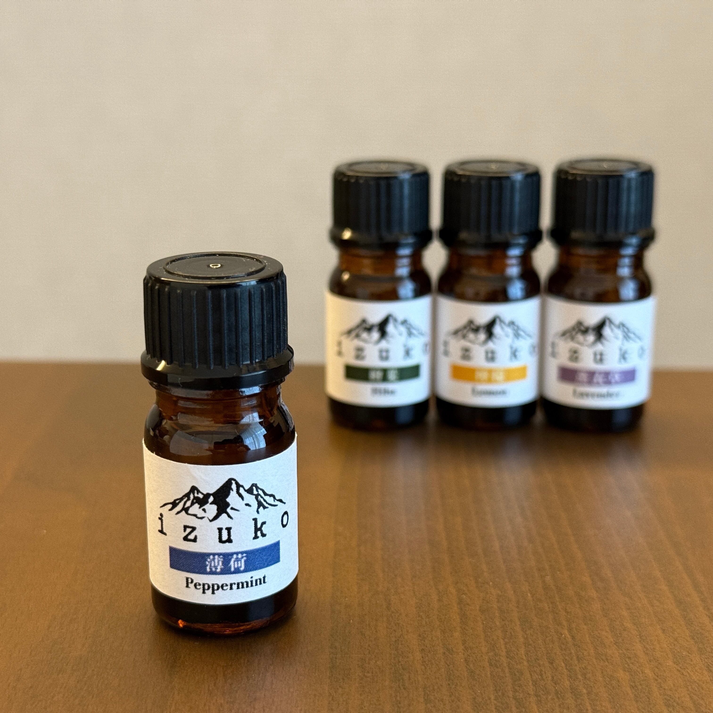 izukoでは自然本来の香りをより楽しんでいただくため、人工香料は一切使わず、天然精油のみで香りを作り上げています。