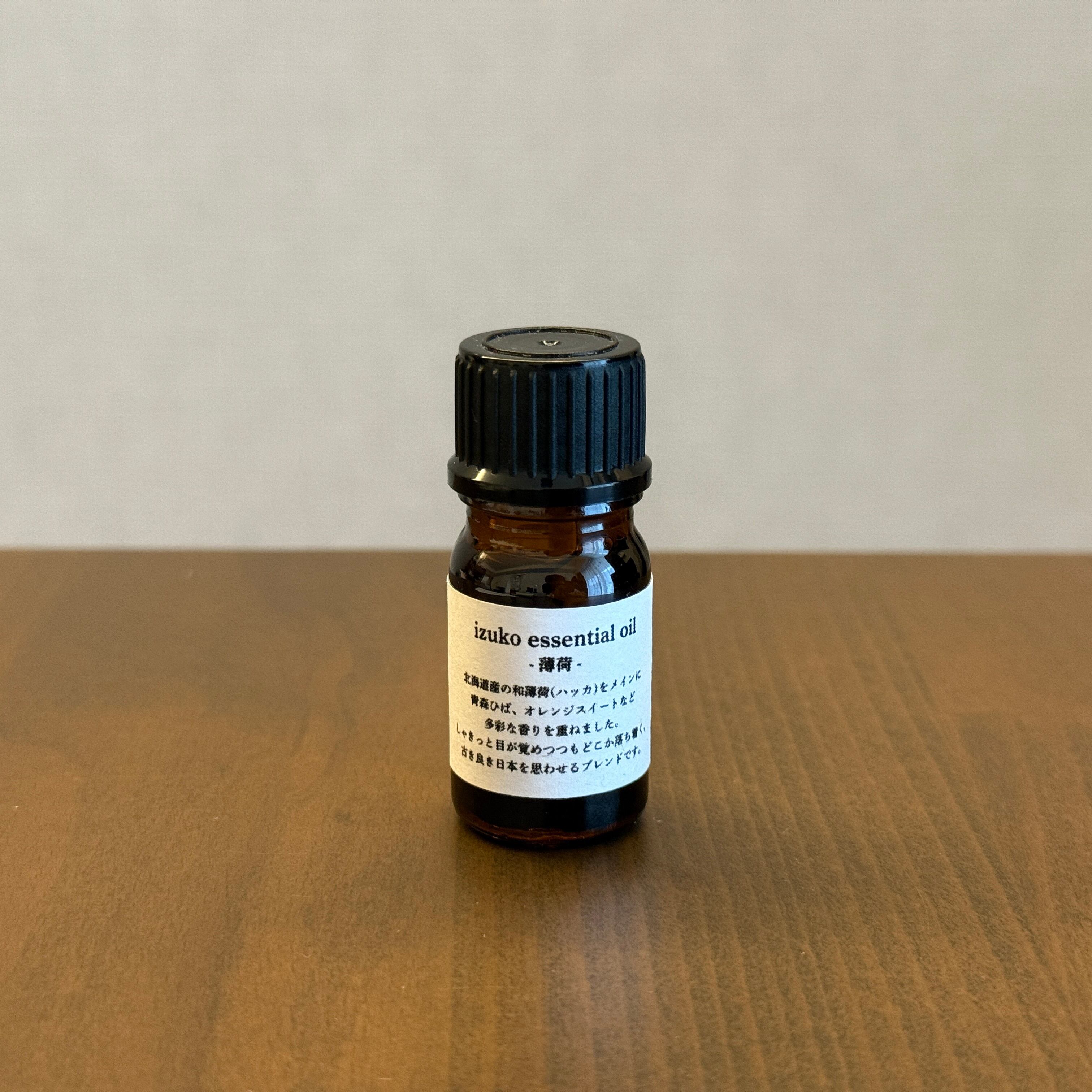 北海道産の和ハッカ精油をメインに、青森ひば、ローズマリー、オレンジスイートなどをブレンドしたizuko特製のエッセンシャルオイルです。
