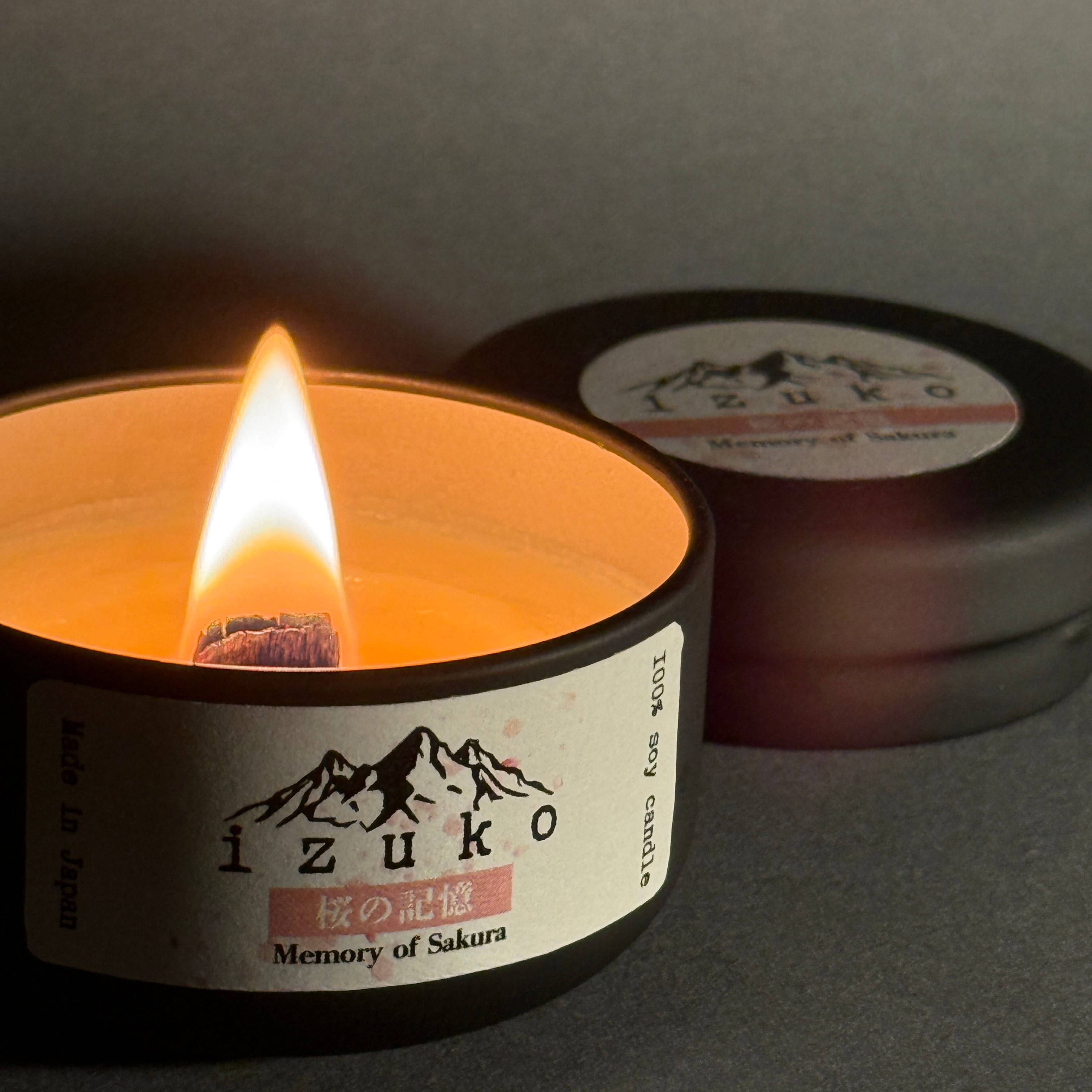 そんな明るくて暖かい、桜を見たあの日の記憶を呼び覚ます香りを、izuko特製の木芯アロマキャンドルに閉じ込めました。