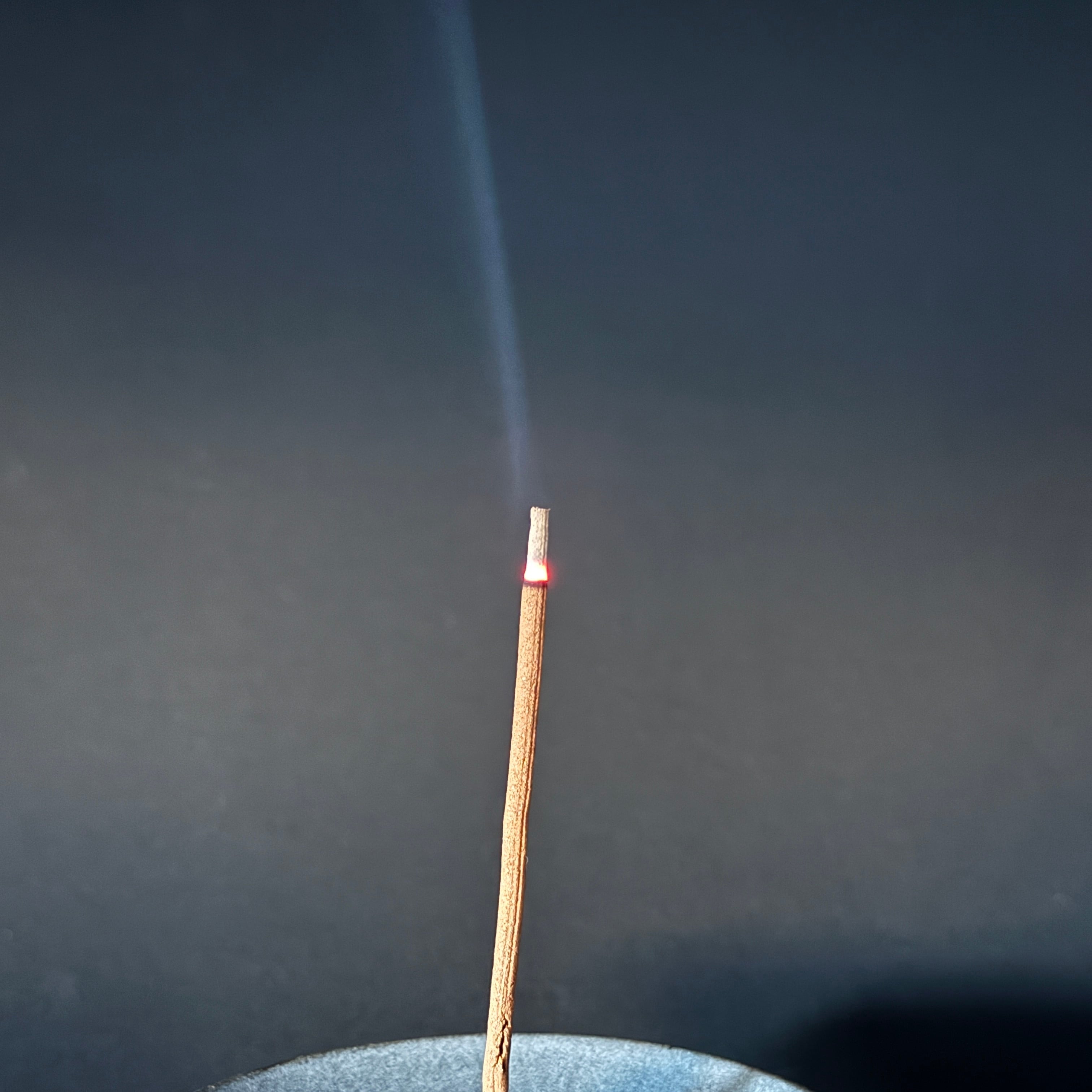 老山白檀の深みのある甘やかさに、杉の複雑なウッドが調和した、どこか懐かしい香りに仕上がりました。無添加のお香はスティックの形状に練り固めるのが非常に難しく、気温・湿度・天気など日々変化する自然の息づかいと向き合いながら一つ一つ手作業で丁寧に作り上げています。