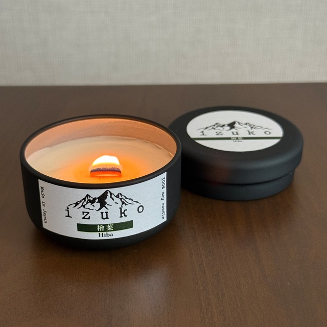 森香る檜葉(ひば)を主役に、香り高い柚子(ゆず)をブレンドしたizuko特製のアロマキャンドルです。 爽やかで凛とした森を思わせる香りを持つ檜葉に、複雑で上品な甘さを持つ柚子をひとさじ加えることで、青々とした森に吹き抜ける爽やかな風を思わせる香りを目指しました。 ⚫︎香り izukoでは自然本来の香りをより楽しんでいただくため、一般的なアロマキャンドルに比べて高い比率で精油を配合しております。 希少性の高い精油のためお値段が少し高くなってしまいますが、天然精油100%の贅沢な香りをお楽しみください。 <檜葉(ひば)> じっくり時間をかけて丁寧に蒸留された青森産の精油を使用。 森林浴を思わせる清々しさと、少し甘みのあるウッディな香りが特徴です。 ウッディ系の代表格であるヒノキに比べ、檜葉はより力強くフレッシュなウッドの香りを持ち、早朝のすっきりとした空気で満たされた森の中を散策しているような気分を味わえます。 <柚子(ゆず)> 高知・四万十川流域で育ち、厳しい夏を乗り越えた柚子の果皮から丁寧に抽出し、搾りたての香りを閉じ込めた貴重な精油を使用。 日本を代表する「和の柑橘」であり、上品な柑橘の爽やかさと、深みのあるほのかな苦味が特徴です。 「冬至に柚子湯に入ると風邪を引かない」と言われ、古くから日本人に親しまれてきました。 近年ではその複雑で奥行きのある香りが世界的にも注目され、食料品や化粧品など様々な用途に活用されています。 ⚫︎音 キャンドル芯には木芯を使用しているため、燃焼中パチパチと木が燃える音が微かに聞こえます。 静かな部屋の中、暖炉や焚き火の前にいるような心地よい音をお楽しみください。 ⚫︎灯 本製品は天然植物性のソイワックスを100%使用しています。 ソイ(大豆)ワックスは、パラフィンワックスやジェルワックスなどの石油系ワックスに比べてススや煙が少なく安心してご利用いただきやすいのが特徴です。 また、低温でゆっくり燃えるため炎の光が柔らかく、燃焼時間も長いとされています。 石油系ワックスに比べて少しお値段が張るのが欠点ですが、柔らかな光を安心してじっくりとお楽しみいただくため、izukoではソイワックス100%使用にこだわっています。 ⚫︎原料 - ソイワックス - 精油:檜葉(青森産)、柚子(高知産)など ※収穫状況により産地は変更となる場合があります。 ⚫︎製品情報 - 容量:55g - サイズ:直径6.5cm×高さ4.6cm - 燃焼時間:10〜15時間 ※添加物などを使用せず天然の素材のみで手作りしているため、まれに小さなヒビや気泡などが生じることがあります。 ⚫︎使用上の注意 ・食品ではありません。 ・使用前に必ず付属の説明書を読み、火気に十分注意しながらご使用ください。 ・使用していない時は必ず蓋をしっかりと閉め、直射日光・高温多湿の場所を避けて保管してください。 ・小さなお子様やペットの手の届かないところにて保管、使用してください。 ・香り成分の劣化・揮発を防ぐため、商品到着後から6か月以内を目安にご使用ください。 ・ワックス、精油とも天然植物由来の素材を使用しているため、見た目や香り等の品質にばらつきがあることがございます。 ・製品画像の容器やラベルは調達状況により使用が変更となることがございます。安定的な仕入れに努めてまいりますがご容赦ください。 どこか懐かしい和の香り、木が燃える心地よい音、温かみのあるキャンドルの灯り。 自然を五感で感じる特別な時間をお楽しみください。